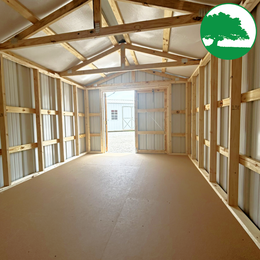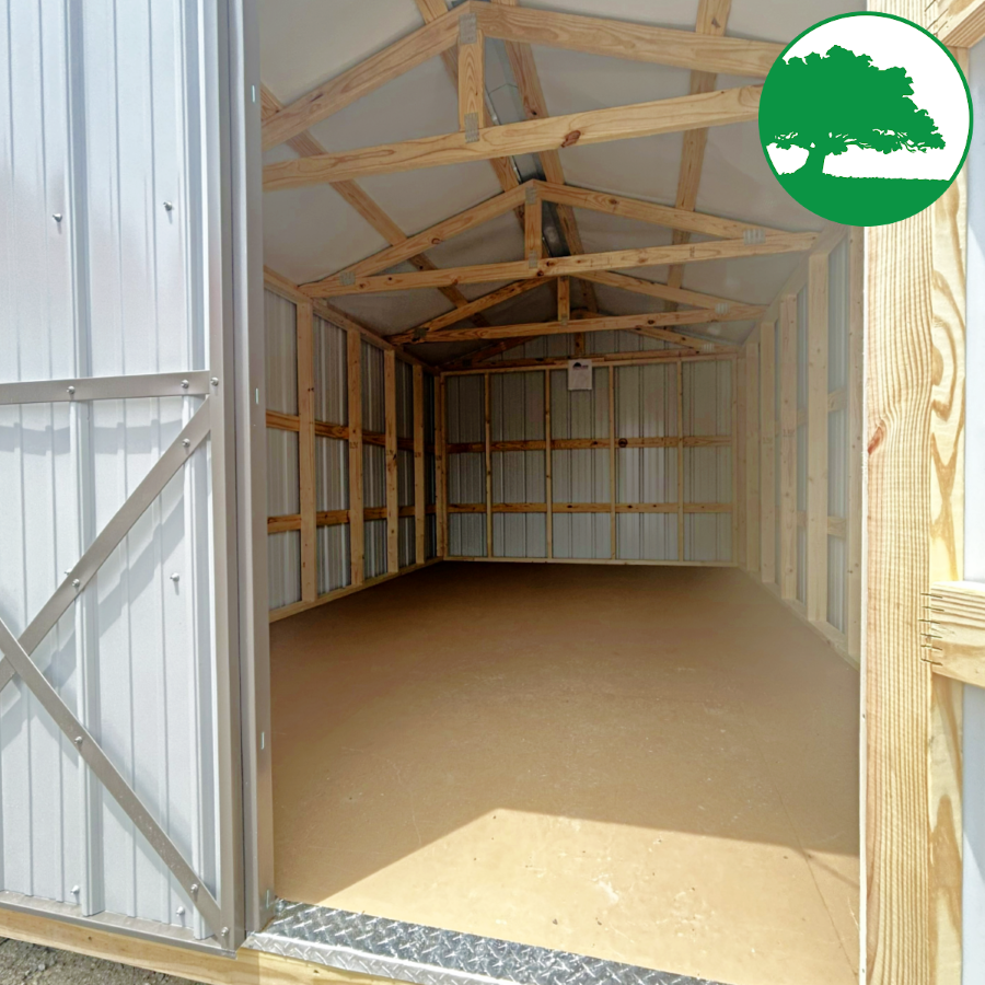 Additional Features: 6′ Double Doors, 6’3″ Wall Height, Baked-On Enamel Metal Roofing w/ Bubble Wrap below, LP ProStruct Flooring w/ SmartFinish, Heavy Duty aluminum diamond plate threshold & FREE Delivery with blocks within 50 miles.