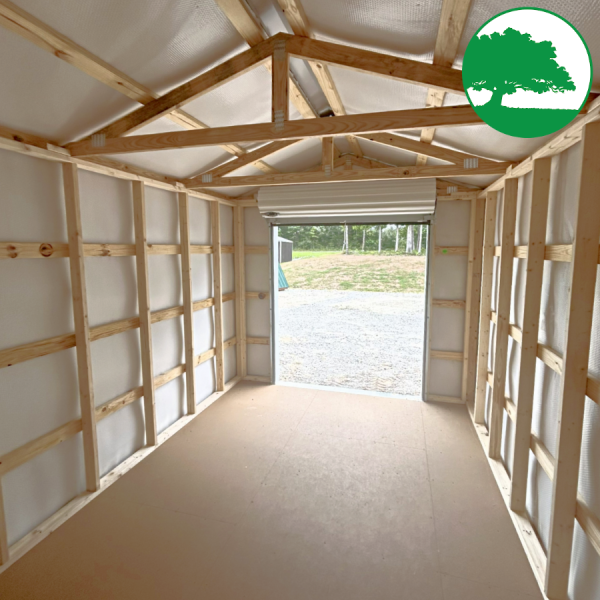 Additional Features: 6′ x 7′ Roll-Up Door, Upgraded 7’8″ Wall Height, Upgraded Bubble Wrap Walls, Baked-On Enamel Metal Roofing w/ Bubble Wrap below, LP ProStruct Flooring w/ SmartFinish, Heavy Duty aluminum diamond plate threshold & FREE Delivery with blocks within 50 miles.