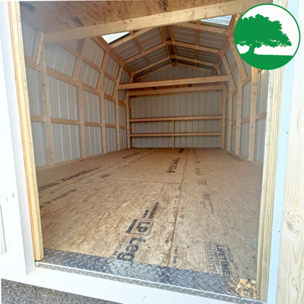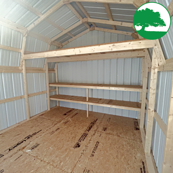 Standard Features: Maintenance free, baked-on enamel metal (LIMITED LIFETIME WARRANTY), Double Doors, Double Shelving, Skylights, Double Overhead Lofts