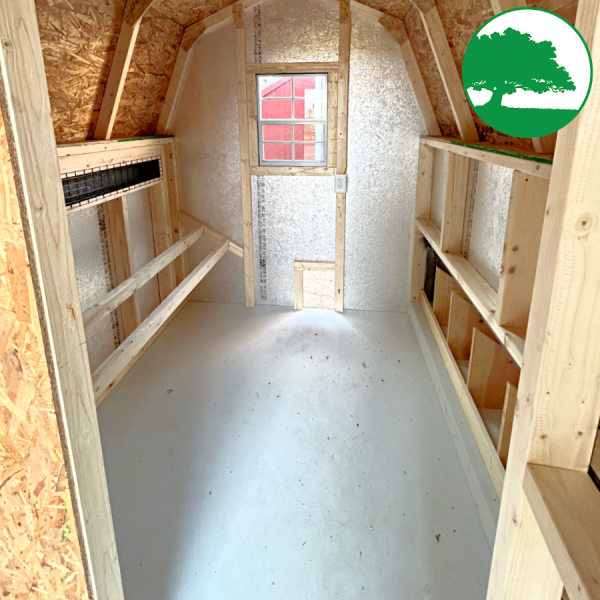 Features: Nesting Boxes w/ Outside Access, Entry Door w/ Keyed Entry, 4′ Feed Room w/ Interior Door, Electric (2 Lights w/ Switch in Each Room, Chicken Door w/ Hinges, Roosting Bar, (2) Aluminum Windows, 5/8″ LP Floor w/ Epoxy Coating, Vent Lift w/ Screen, LP SmartSiding (50 Year Warranty)
