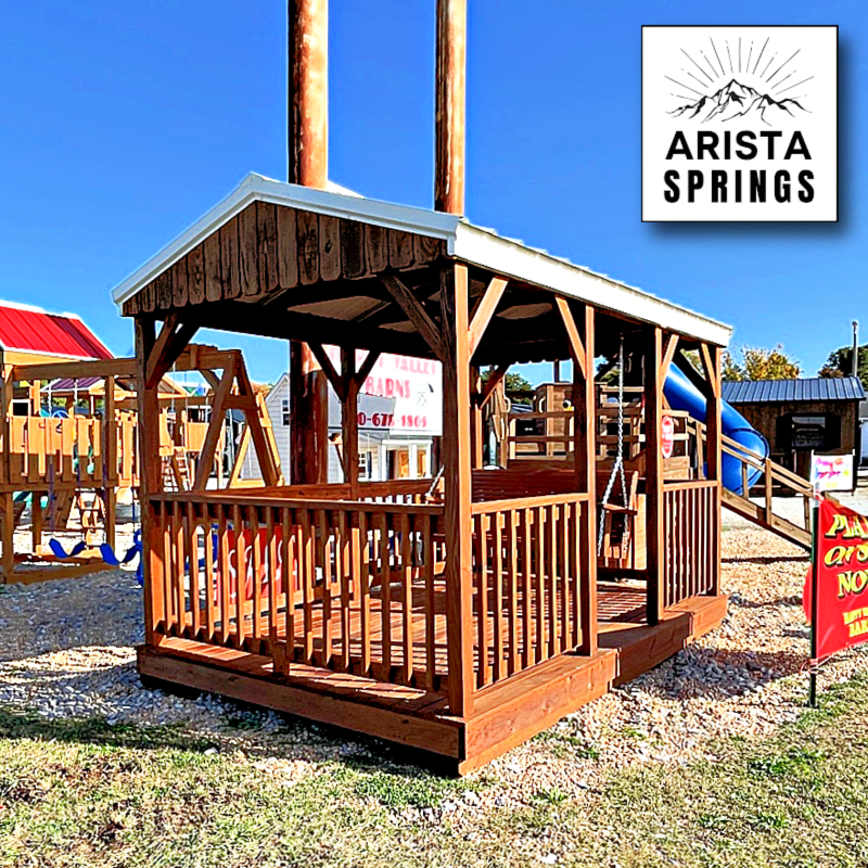 Features: 4′ x 4′ Posts, 5/4″ x 6″ Decking, 4″ x 6″ Pressure Treated Runners, 29 Gauge Metal Roof, 3′ Single opening / Walk through, 5′ Swing w/ Support Beam, Free Delivery with Blocks​