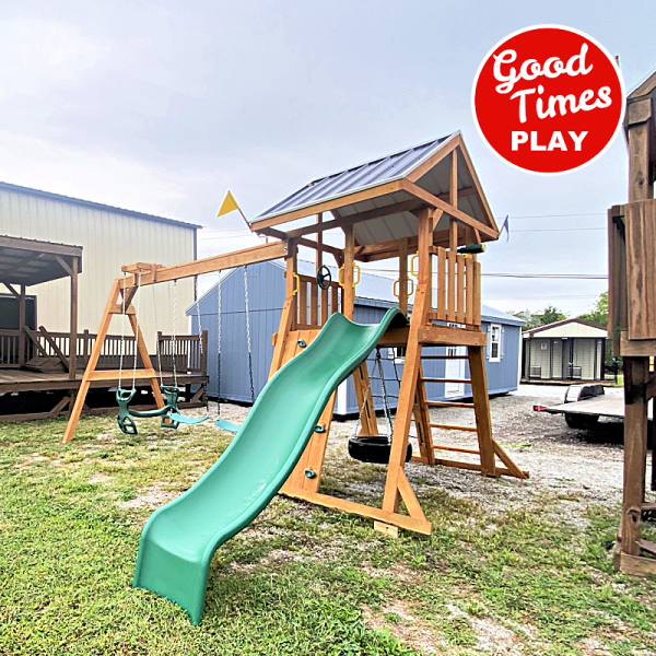 beams / accessories: 3 position swing beam with (2) belt swings & ez ryder (2-kid swing)