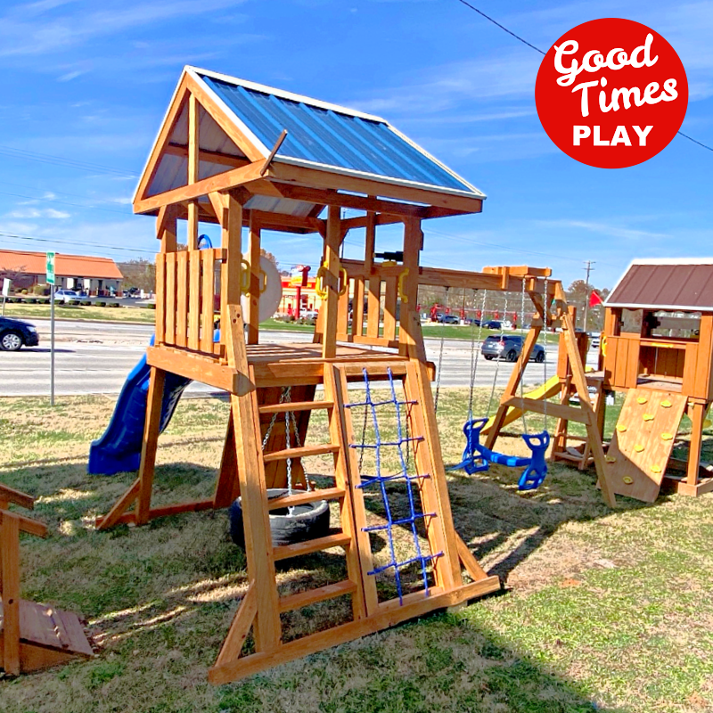 beams / accessories: 3 position swing beam with (2) belt swings & ez ryder (2-kid swing)