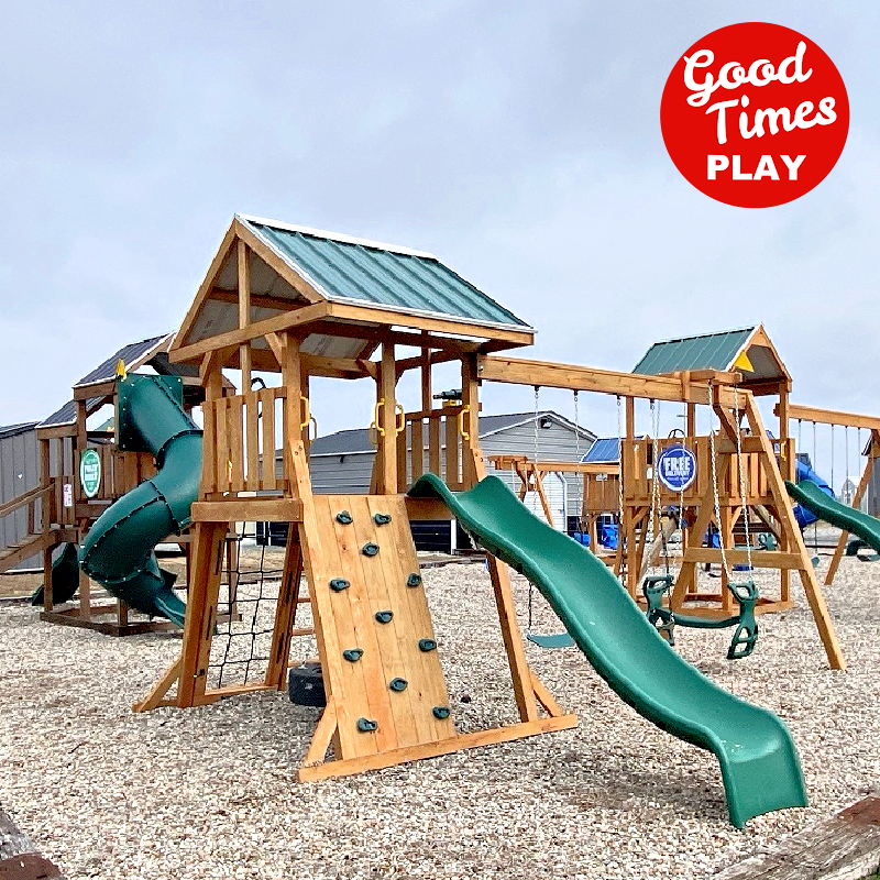 beams / accessories: 3 position swing beam with (2) belt swings & ez ryder (2-kid swing)