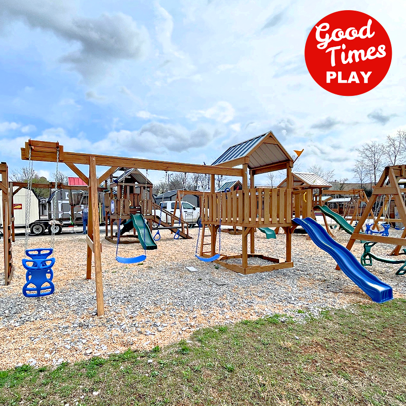 Beams / Accessories: 3-position swing beam with (2) belt swings, trapeze bar with rings & EZ Ryder (2-kid swing)