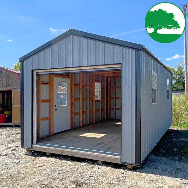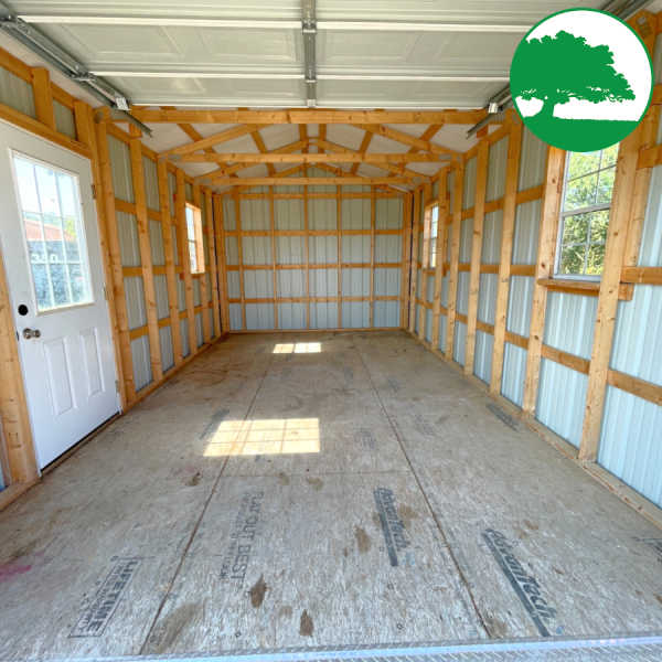 Additional Features: 9′ x 7′ Overhead Door, 9-Lite (1/2 Glass) Door, (3) 2′ x 3′ Aluminum Windows, 8′ Walls & 3/4″ Advantech Flooring