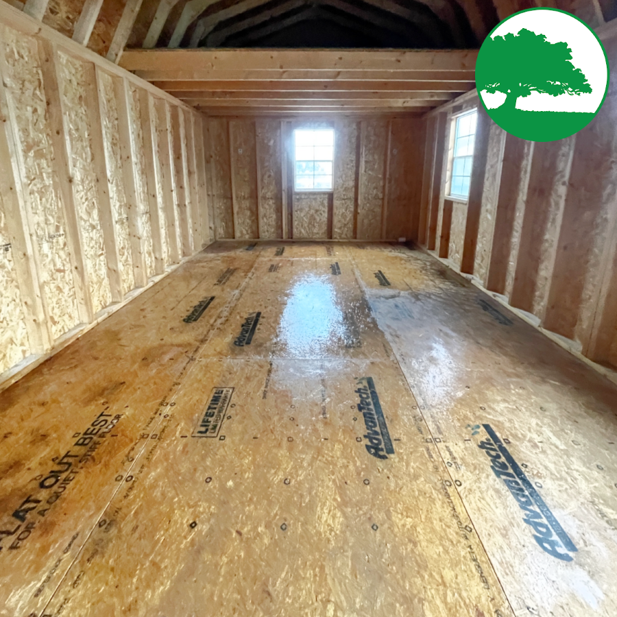 Additional Features: Double Doors, (4) 2′ x 3′ Aluminum Windows, Double Overhead Lofts, LP SmartSide Siding (50 Year Warranty), 16″ o.c. Wall & Rafter Spacing, 3/4″ Advantech Flooring, Heavy Duty aluminum diamond plate threshold & FREE Delivery with blocks within 50 miles.