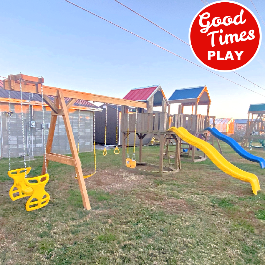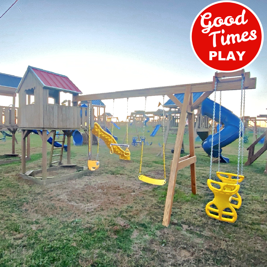 beams / accessories: 4 position swing beam with belt swing, trapeze bar with rings, toddler swing & ez ryder (2-kid swing)