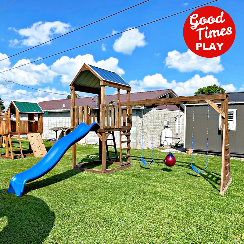 • Beams / Accessories: Monkey bar upgrade with (2) belt swings & buoy ball upgrade