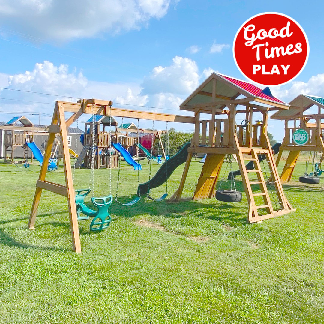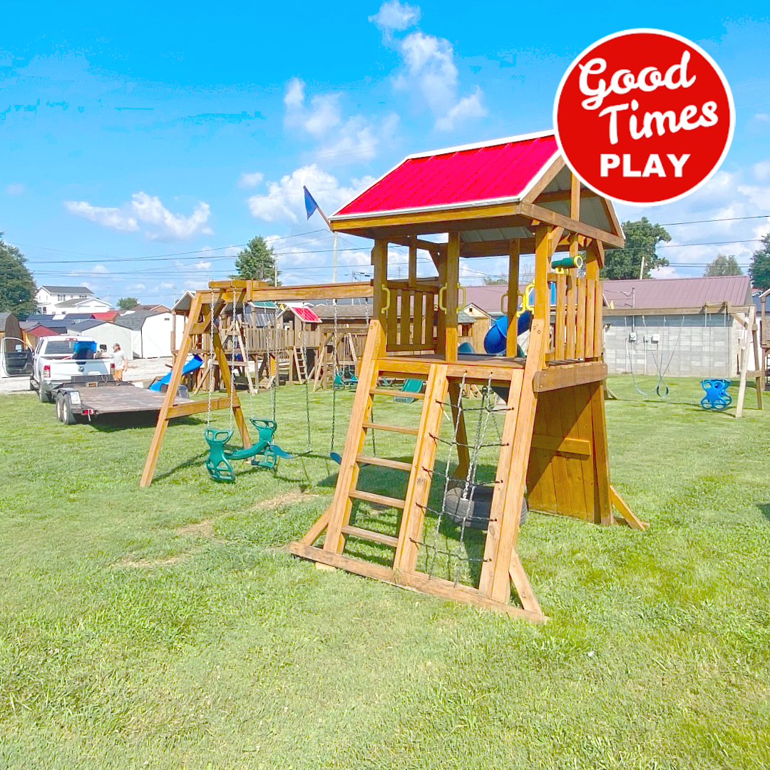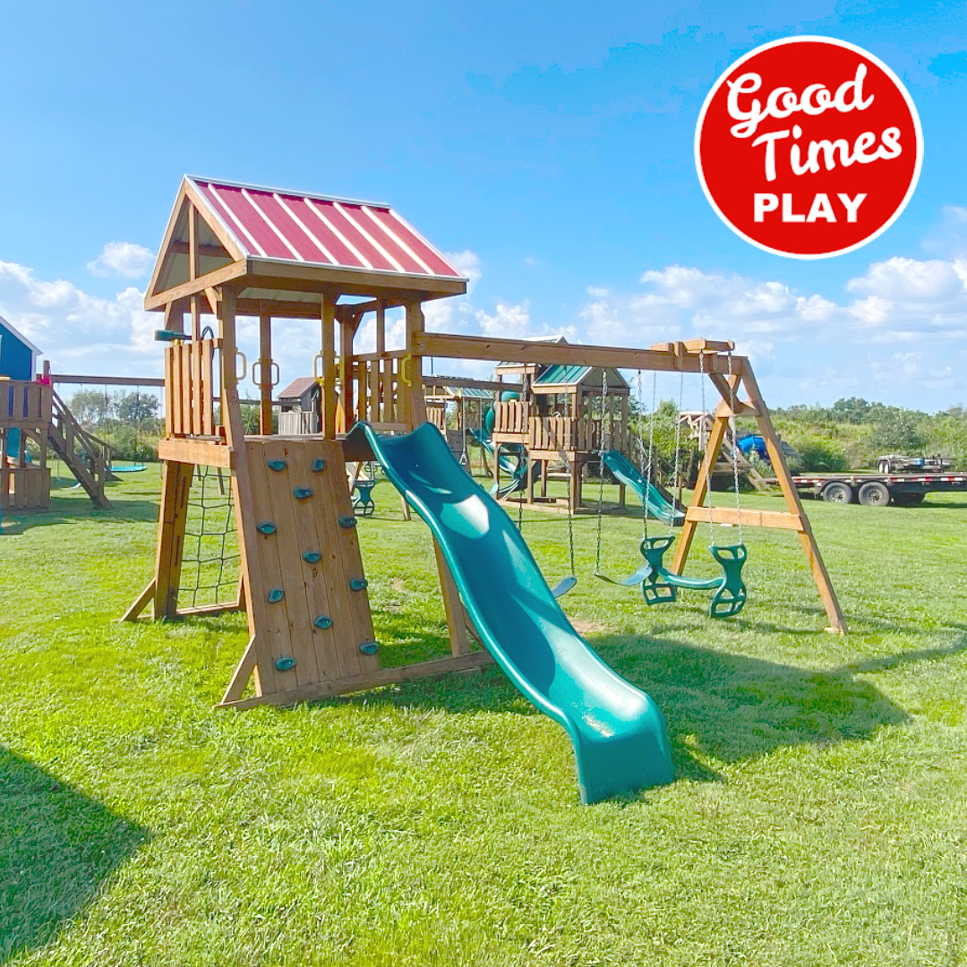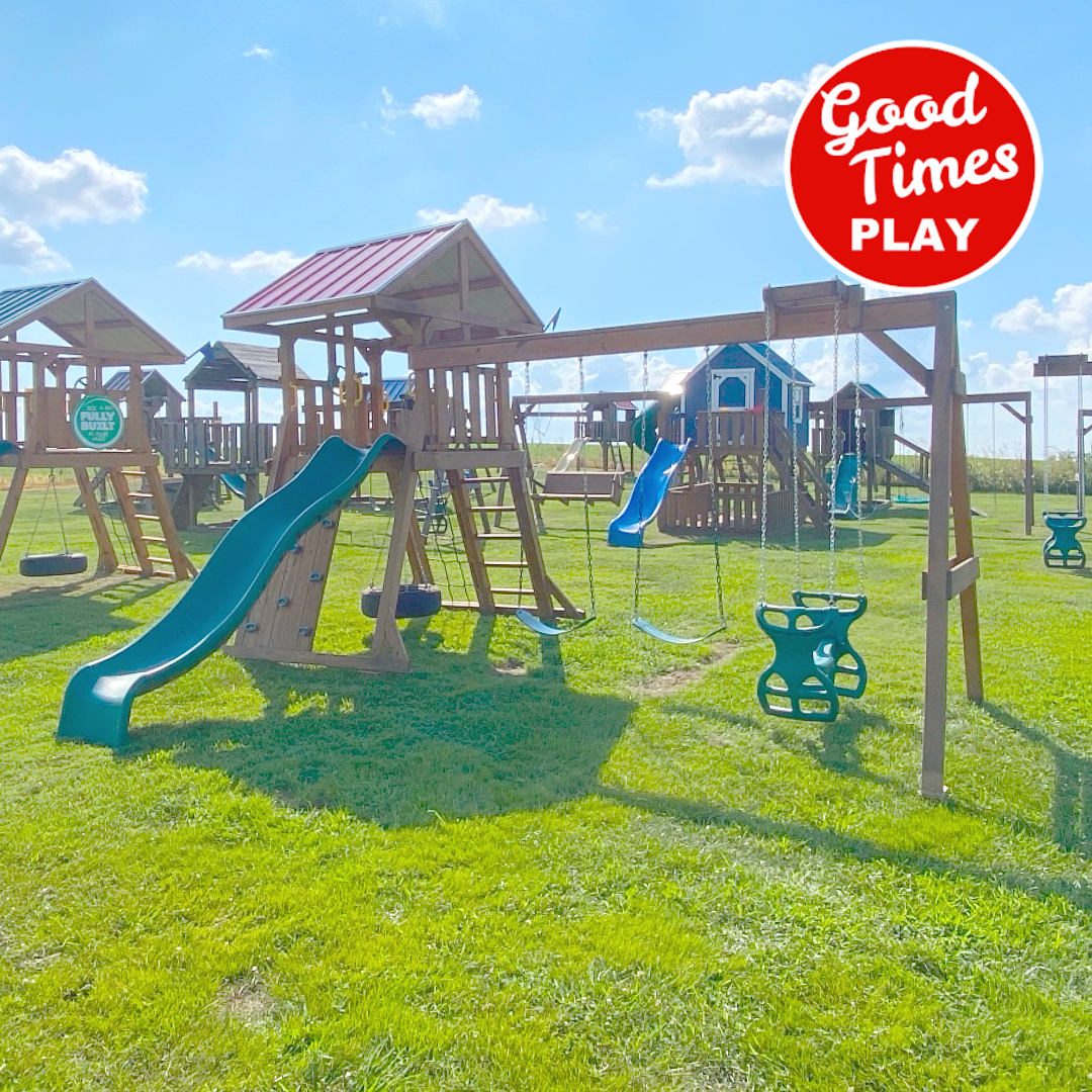 beams / accessories: 3 position swing beam with (2) belt swings & ez ryder (2-kid swing)