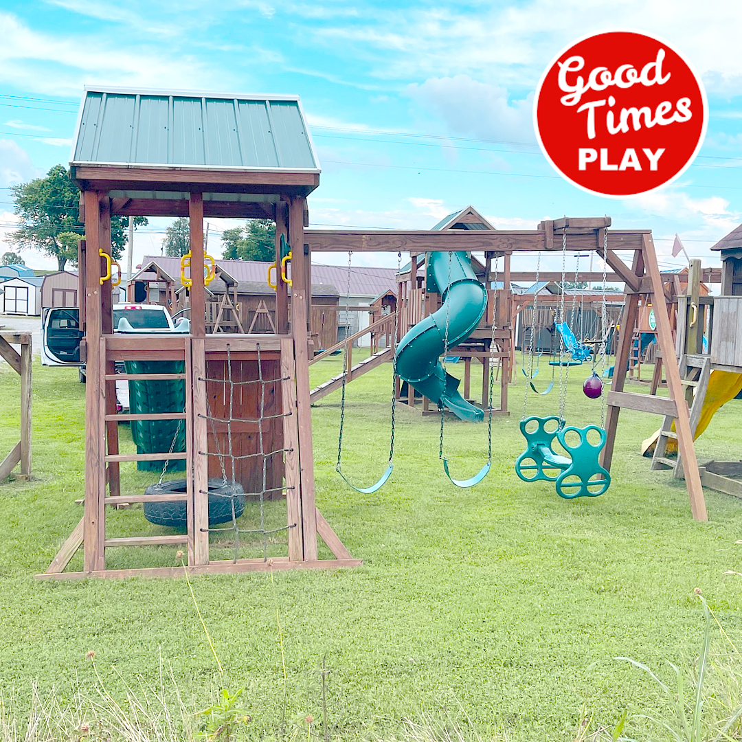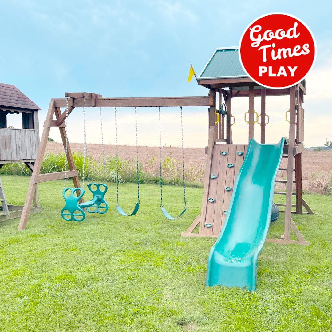 beams / accessories: 3 position swing beam with (2) belt swings & ez ryder (2-kid swing)