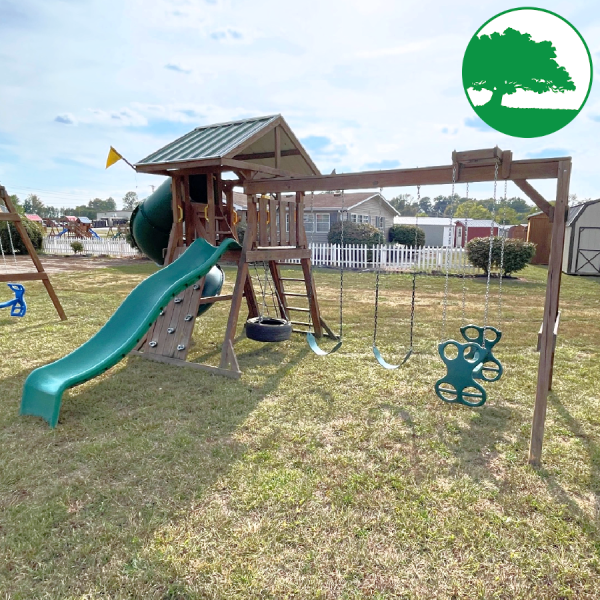 beams / accessories: 3 position swing beam with (2) belt swings & ez ryder (2-kid swing)