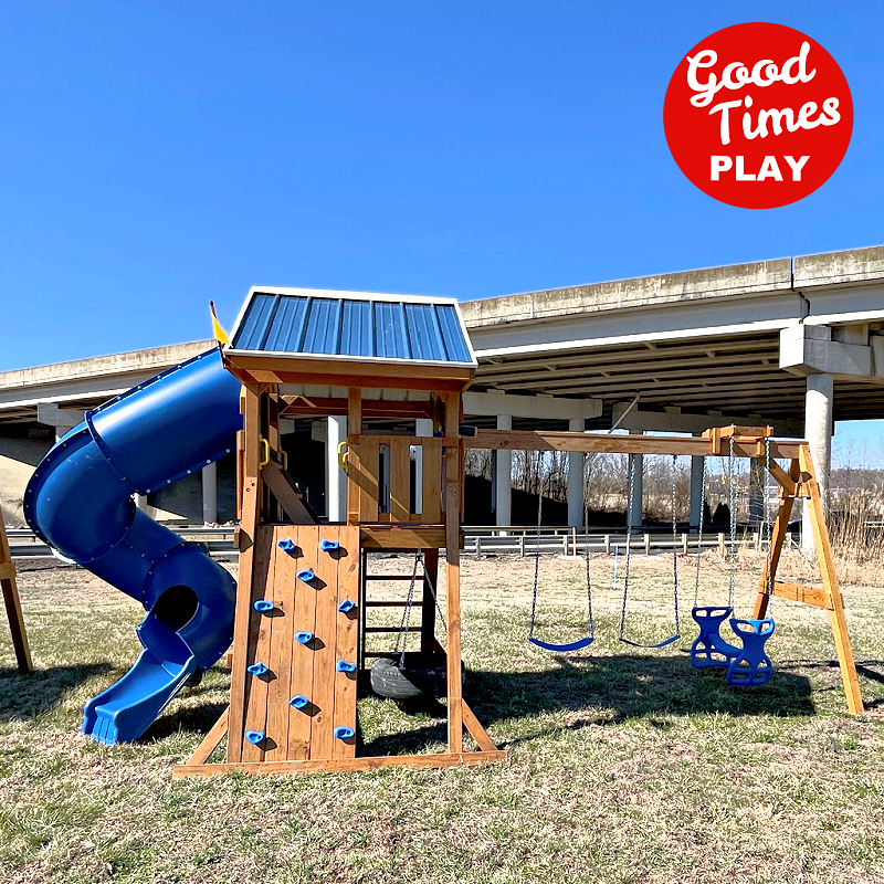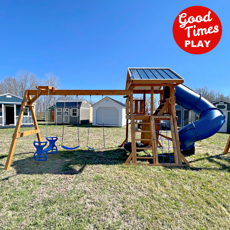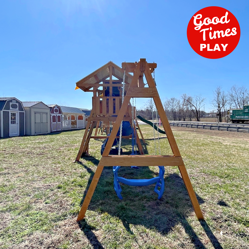 beams / accessories: 3 position swing beam with (2) belt swings & ez ryder (2-kid swing)