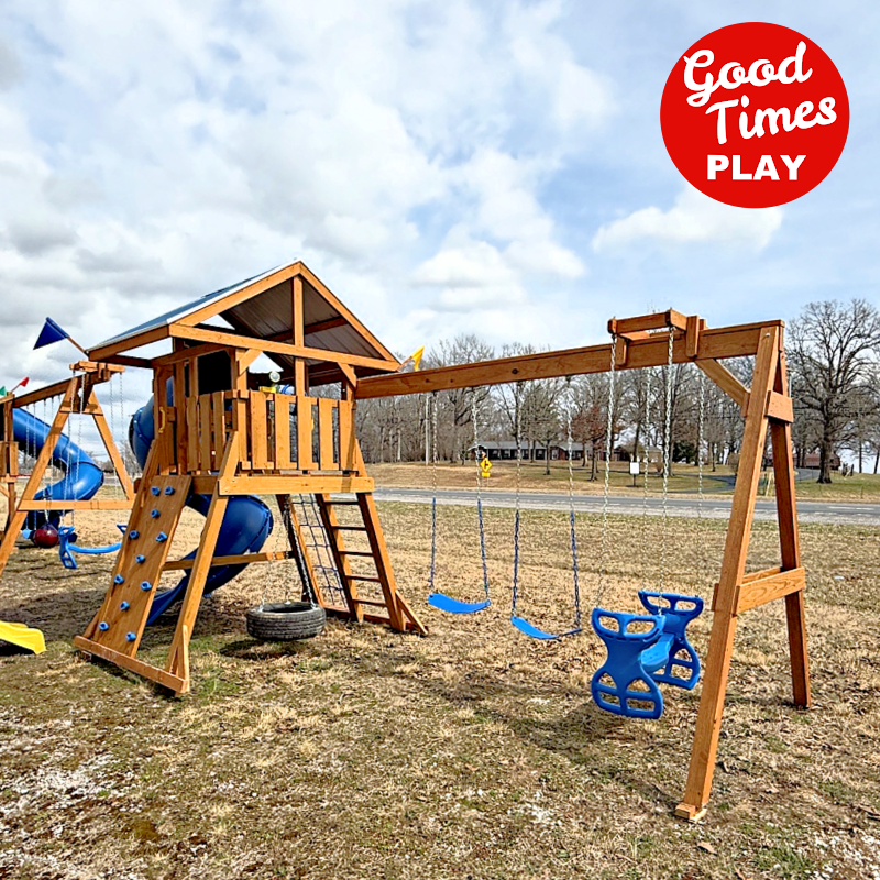 beams / accessories: 3 position swing beam with (2) belt swings & ez ryder (2-kid swing)