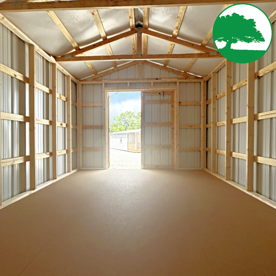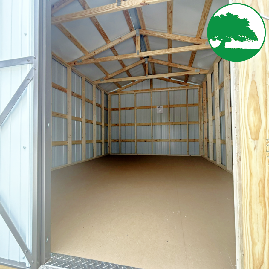 Additional Features: 6′ Double Doors, 7’8″ Wall Height, Baked-On Enamel Metal Roofing w/ Bubble Wrap below, LP ProStruct Flooring w/ SmartFinish, Heavy Duty aluminum diamond plate threshold & FREE Delivery with blocks within 50 miles.