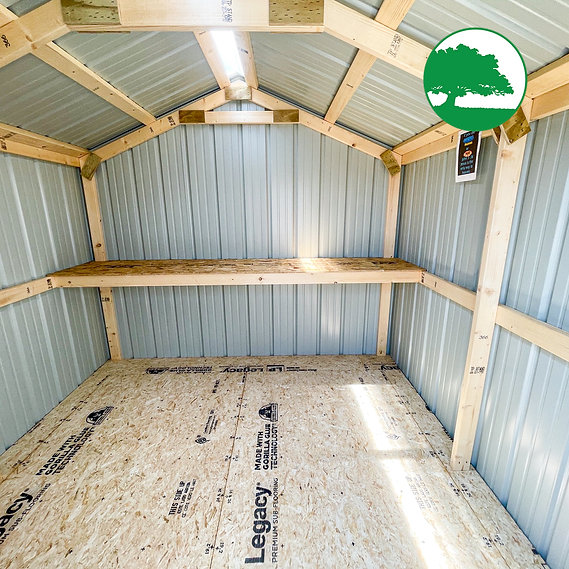 Features: Double Door Upgrade, Lighted Ridge Cap, 23″ Deep Shelf on Back Wall, Seal Tite Screws, LP Legacy tongue & groove Flooring