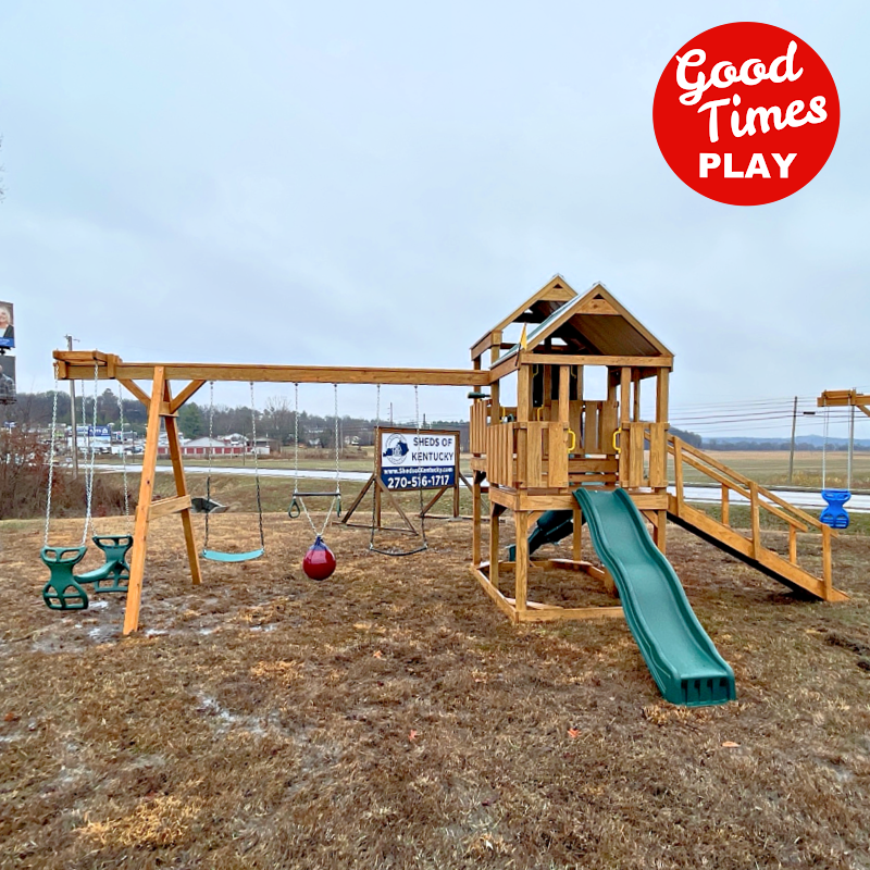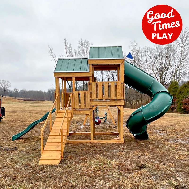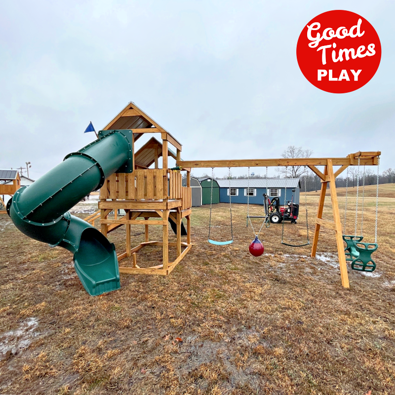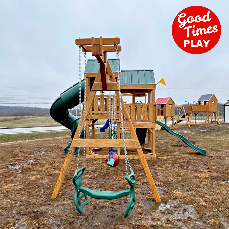 beams / accessories: 4 position swing beam with (2) belt swings, buoy ball & ez ryder (2-kid swing)