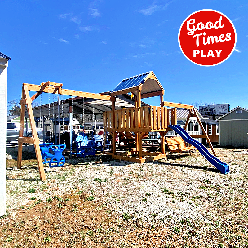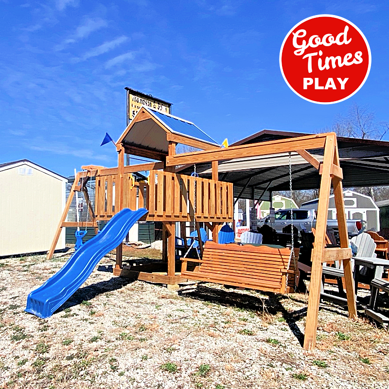 beams / accessories: 3 position swing beam with (2) belt swings & ez ryder (2-kid swing), additional swing beam with 5 ft adult swing